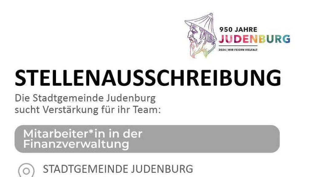 Unterlagen an die Stadtgemeinde Judenburg, Referat Personal, 8750 Judenburg, Hauptplatz 1, oder an die E-Mail-Adresse: g.hinteregger@judenburg.at zu richten.